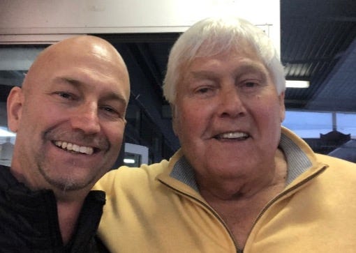 Above: Meeting Mal Brown in 2022 and Brown giving ‘Stazza’ instructions whilst coaching Perth.