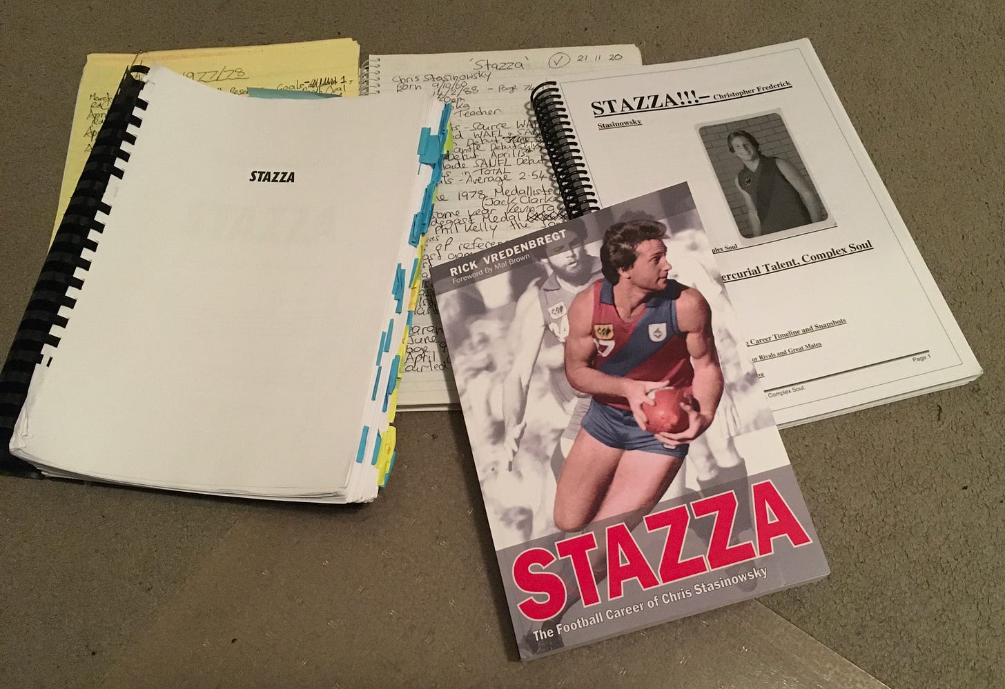 This kickstarted a five-year journey and before long I had several thousand words written down in my notebook, far too many for a social media post or article. Then, coupled with Cometti’s words all those years prior ringing in my head, “I could probably write a book”, I had my epiphany and thought that maybe I should have a crack at it and attempt to tick off that childhood dream. With the kind assistance and endorsement from Brown, for which I’m forever grateful, in sharing his thoughts and recollections of a player that he was very fond of, one contact led to another with each and everyone of them eager to convey their ‘Stazza’ memories.